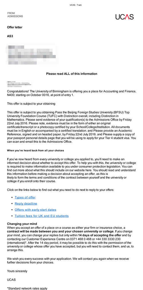 当然,最让人兴奋的还是同学们都得到自己dreamschool的通知书。来自英国巴斯大学、伯明翰大学、约克大学、利兹大学、莱斯特大学、雷丁大学、东安格利亚大学等英国高校的offer纷纷而至。